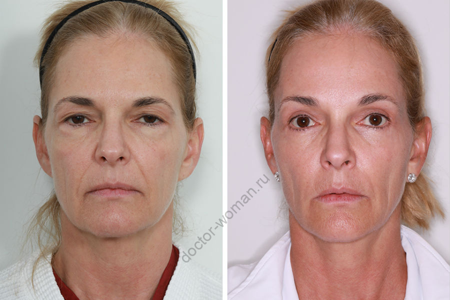 До и после эндоскопической подтяжки бровей и блефаропластики верхних и нижних век через 4 месяца после операции