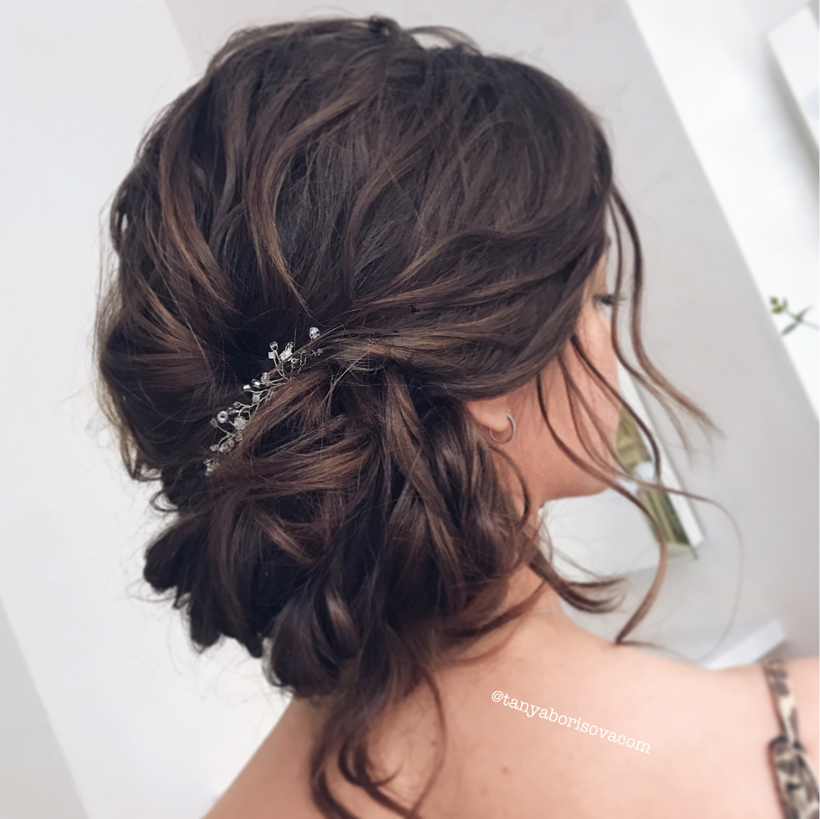 Если у свидетельницы волосы едва достигают линии подбородка, обычно в таких случаях делают простую укладку. Создается прикорневой объем с дальнейшей фиксацией локонов.