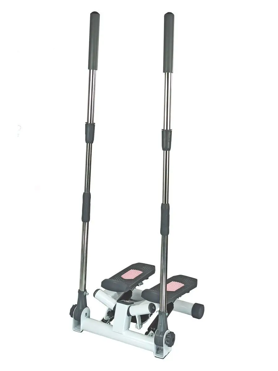 Более дешевый аналог беговой дорожки. Ножные педали не скользят, шагайте в обуви или носках. Рама металлическая, прочная, есть поворотные ручки. Платформы с боковыми упорами. Высоту палок можете регулировать. Педали рассчитаны на 43 (мужской) размер обуви. Делает организм выносливее.