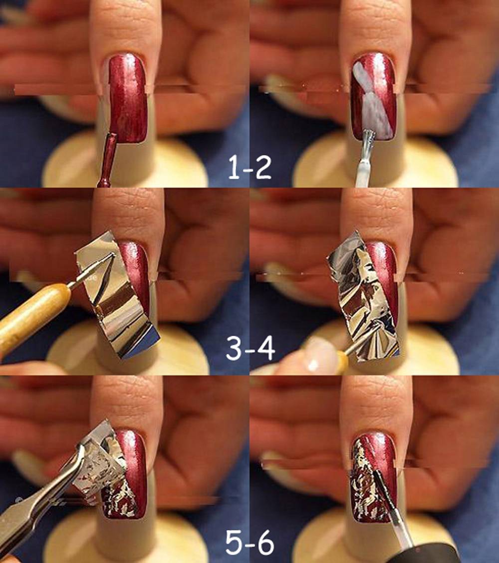 Чтобы маникюр получился красивым, надо правильно выполнить его покрытие. Существует несколько способов наклеивания фольги: