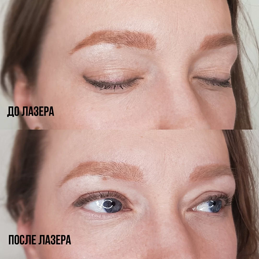 Эффект удаления лазером татуажа бровей порадует один месяц, а после краска, вбитая в поверхность кожи, начнёт терять свой естественный пигмент и со временем изменяется до жёлтого пятна с грязным оттенком. Кроме этого, сквозь него будет просвечиваться старый маскированный пигмент тату.
