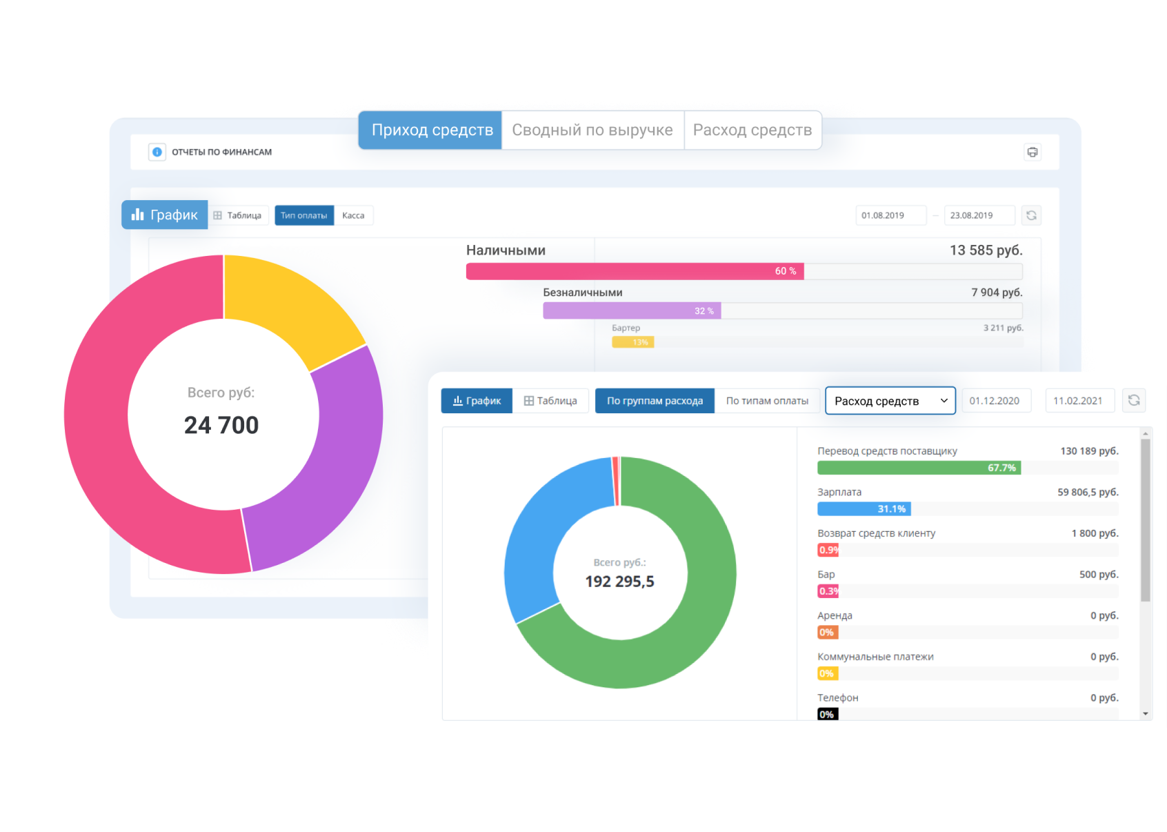 Дашброды, динамические графики сравнения данных с аналогичными периодами, удобные таблицы отчетности позволяют видеть картину целиком и под разными углами.