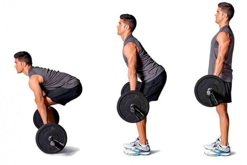 Становая тяга считается одним из 5 базовых силовых упражнений. Суть — необходимо распрямиться за счёт активации мышц задней поверхности бёдер и спины, держа в руках гантели (или штангу).