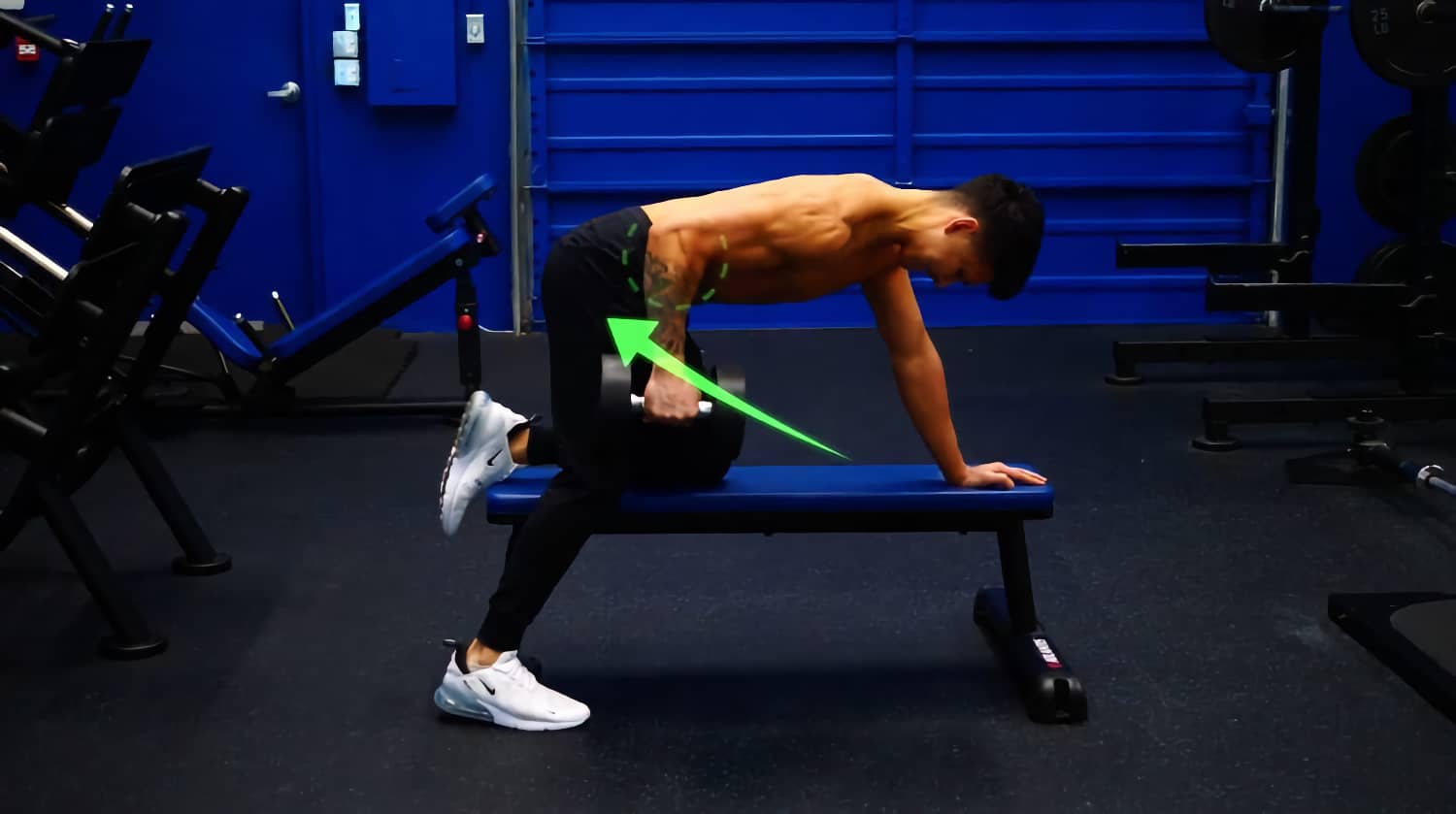 3. Тяга с гантелями в упоре на лавку для широчайших