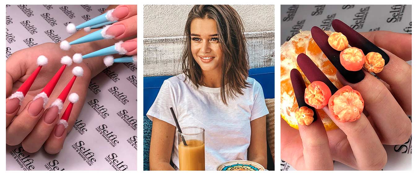 Спокойствие, только спокойствие: эту «красоту» Бородина не исполнила на собственных руках. Но — рьяно рекламировала! «Давайте выбирать? Может, мандаринки сделать на Новый год?» — кокетливо вопрошала звезда «Дома-2» прошлой зимой. Нет, Ксения и ее подписчики, не сделать — такой дизайн пригоден разве что для выставки, чтобы продемонстрировать умения мастера, но никак не для повседневной носки.