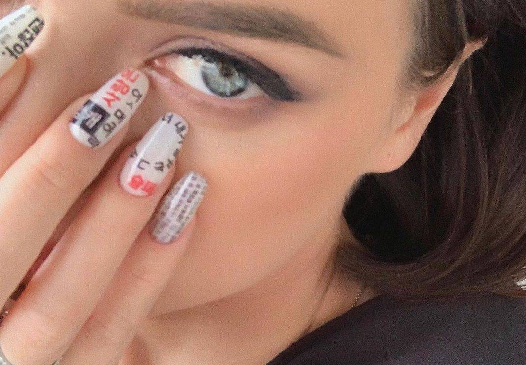 Елену бросает из стороны в сторону: то он сделает минималистичный стильный монохром, то ударится в безудержный дизайн. Самый яркий пример — красно-черные иероглифы на молочных ногтях. Мало того, что знаки разного размера смотрятся броско, так маникюр звезды еще и светится в темноте! Не успели поклонники обсудить своеобразный выбор Темниковой, как она продемонстрировала новый нейл-арт — нарисованных щенков.