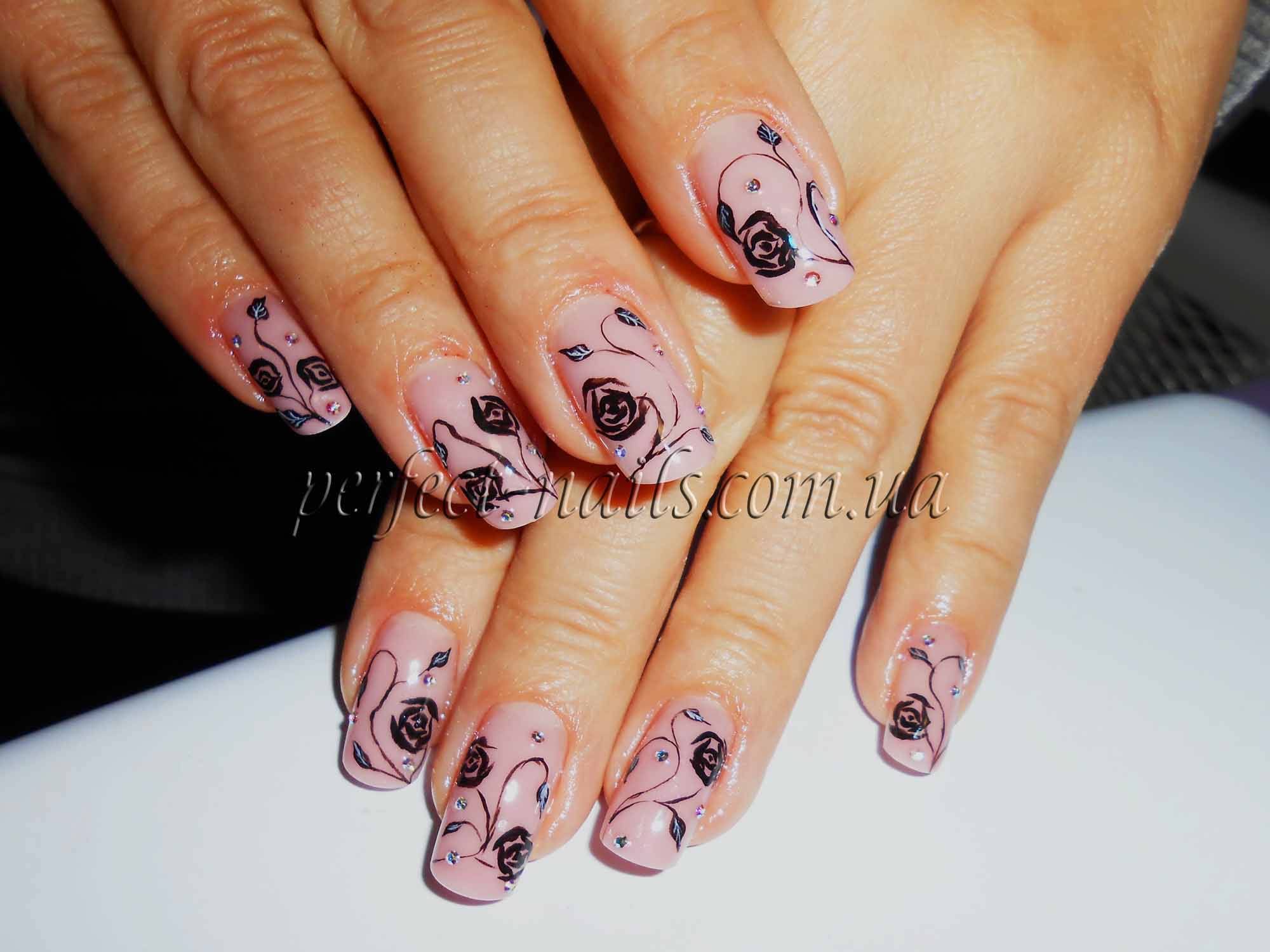 Таким образом, получатся розы на ваших ноготках. Они будут выглядеть нежно, а также подчеркнут вашу женственность. Последним штрихом станет — добавление стразов. В результате получится восхитительный нейл-дизайн, как на фото выше.