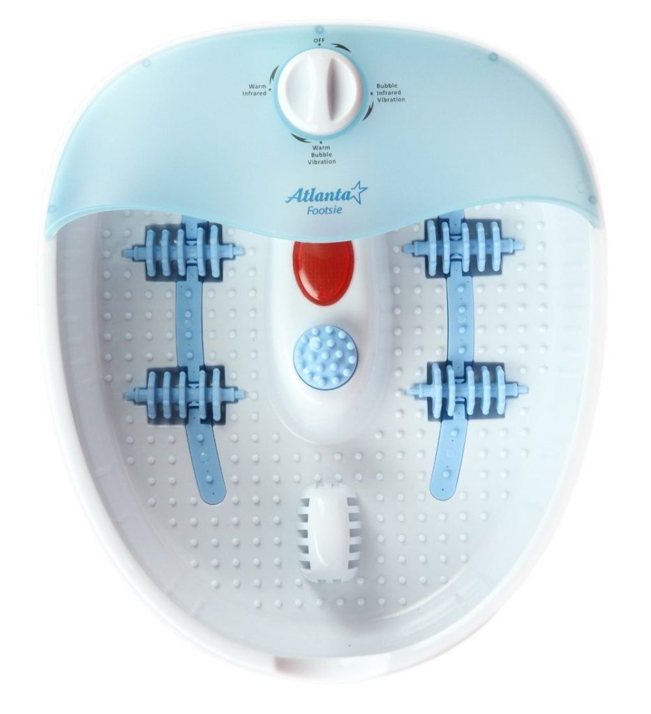 Пузырьковый и вибромассажи – основные функции данного гидромассажера. Ванночка способна выполнять функции магнитного воздействия, подогрева воды, поддержания температуры. Имеется ИК-излучатель. Прибор оснащен ручкой для переноски. В комплект входит кожух для защиты от брызг. Средняя цена – 4 280 рублей.