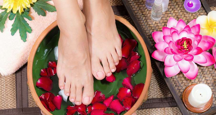 Время нахождение ног в воде не ограничено, но обычно достаточно дождаться остывания раствора до комнатной температуры.
