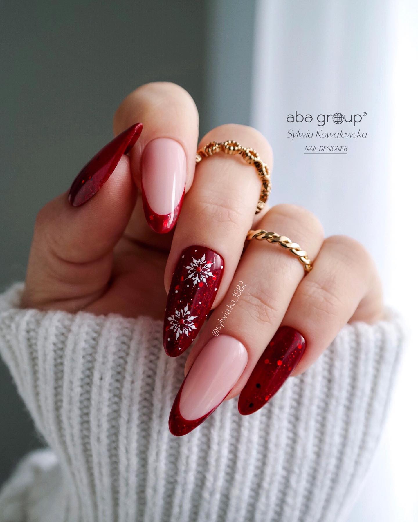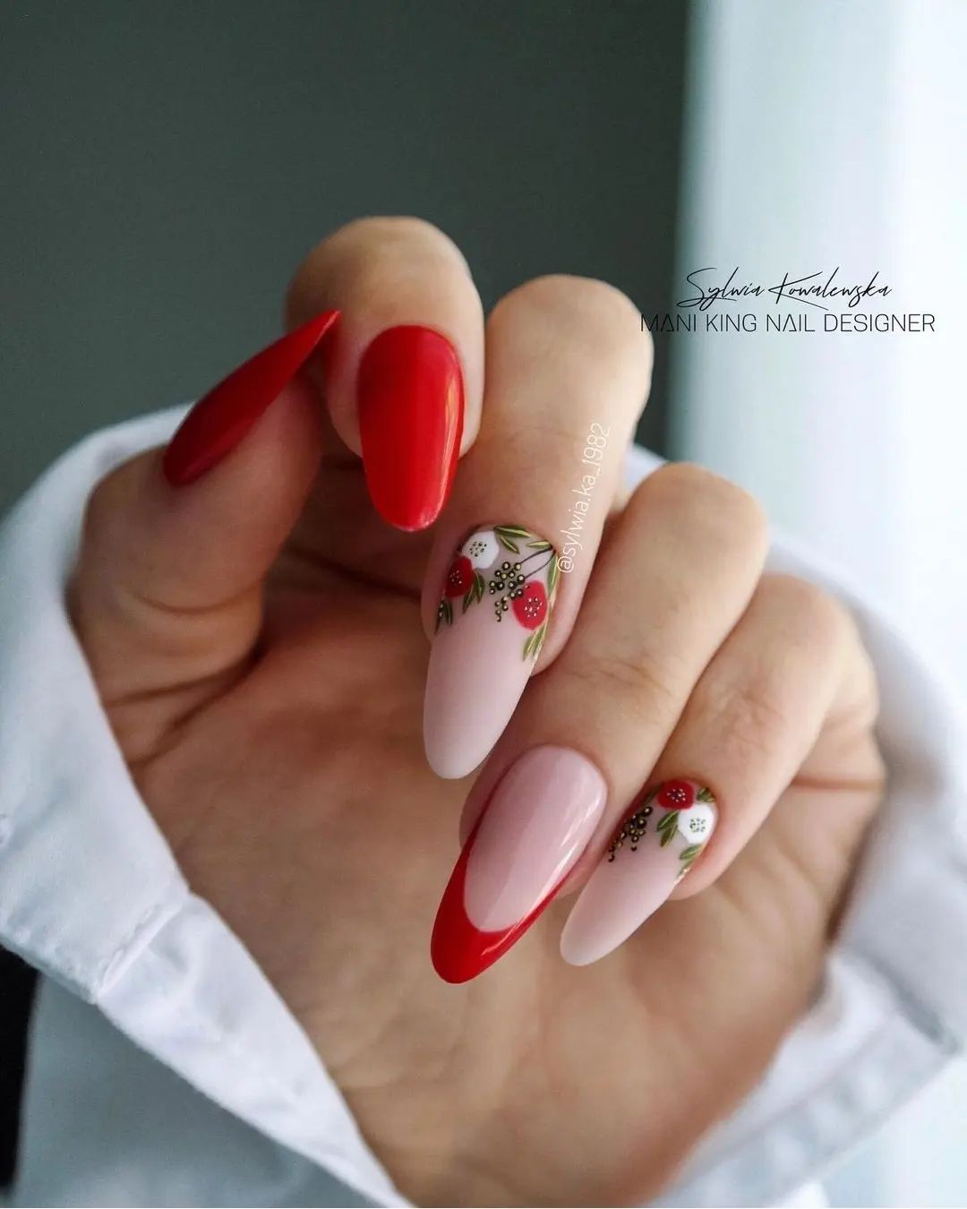 К примеру, сочетание красного и белого оттенка для закрашивания кончиков ноготков.