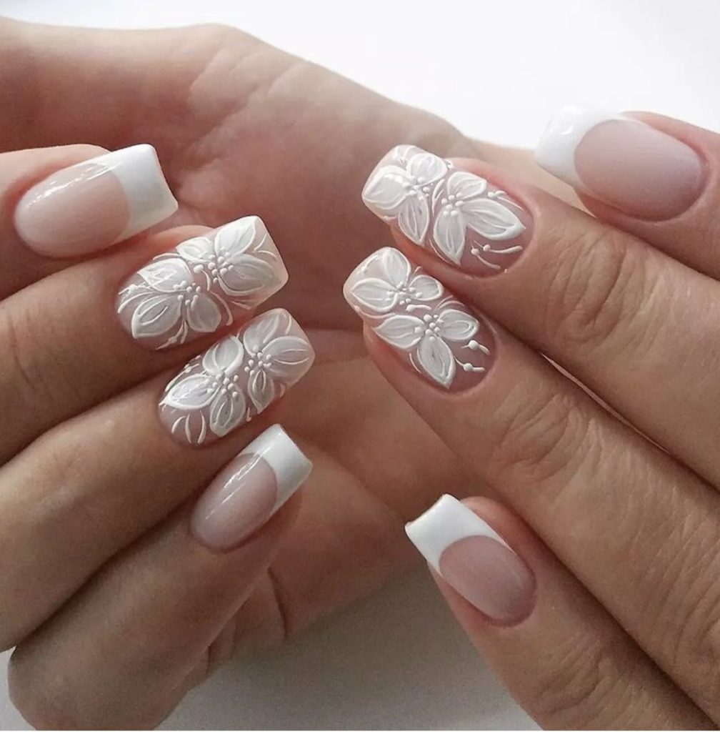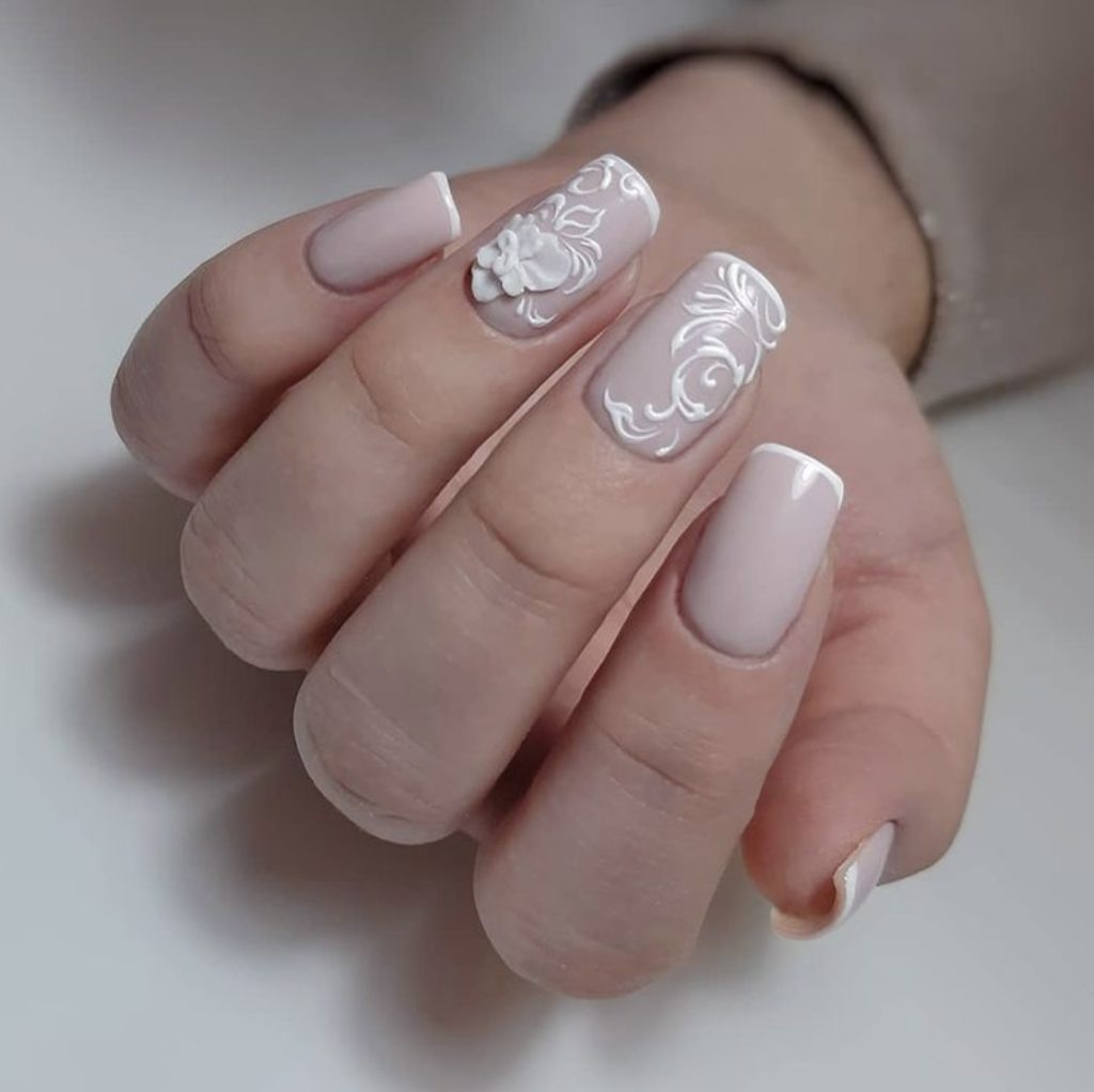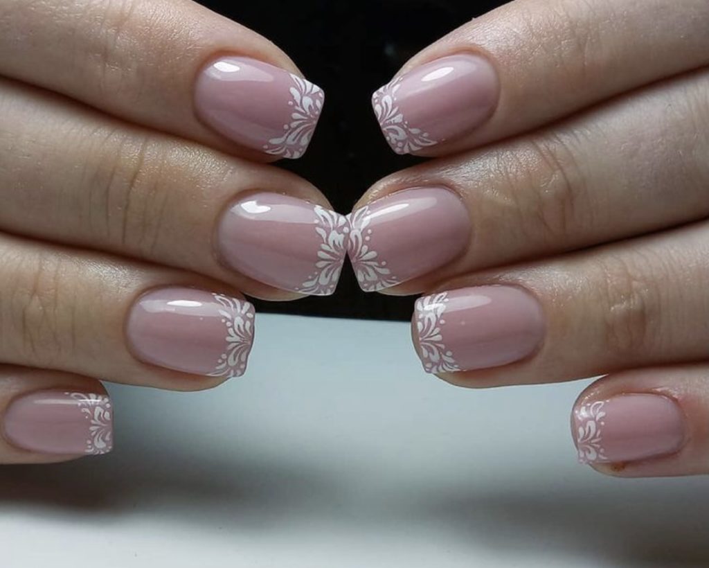 Обязателен контраст базы и цвета кружева. Женственность и нежность для любой длины и формы ногтя.