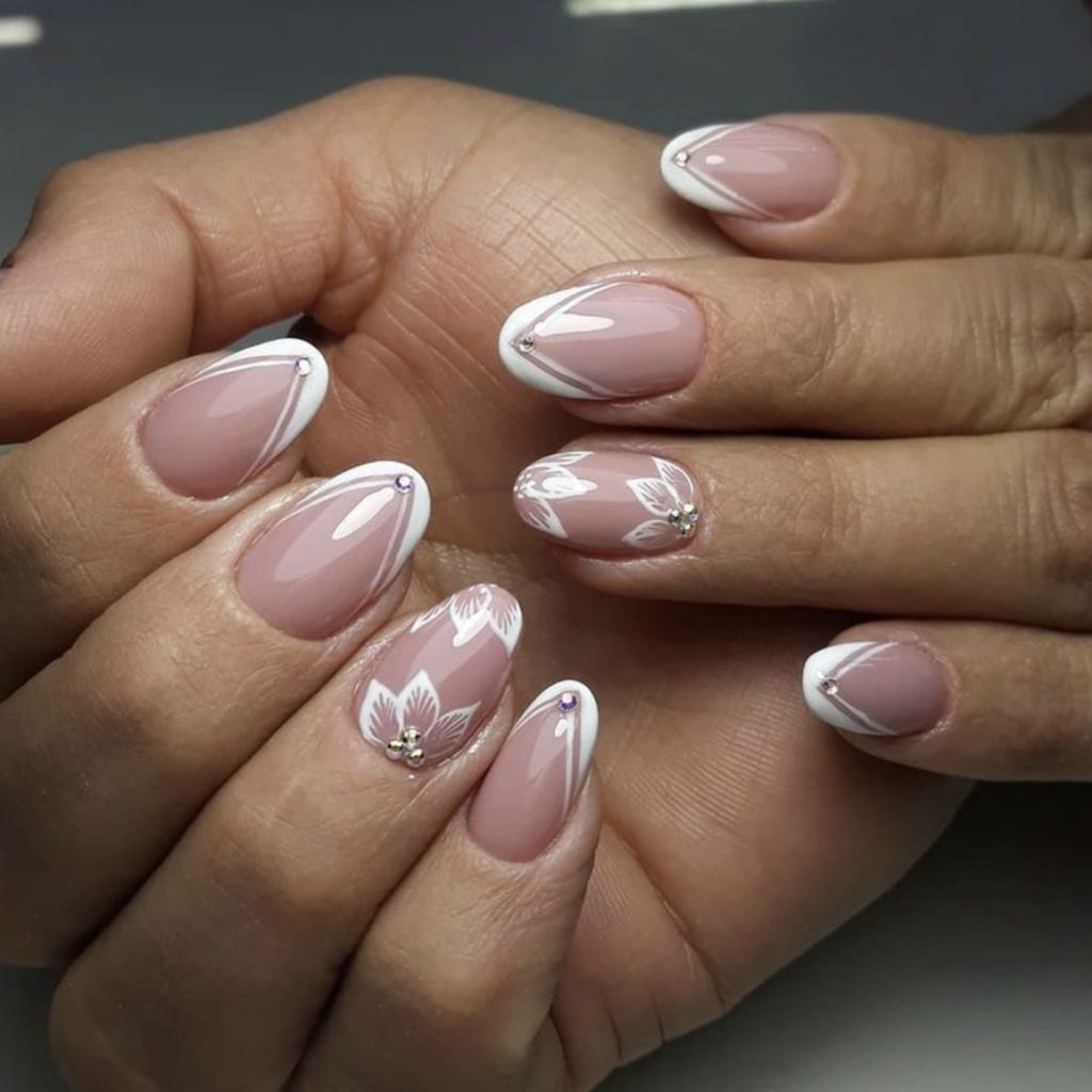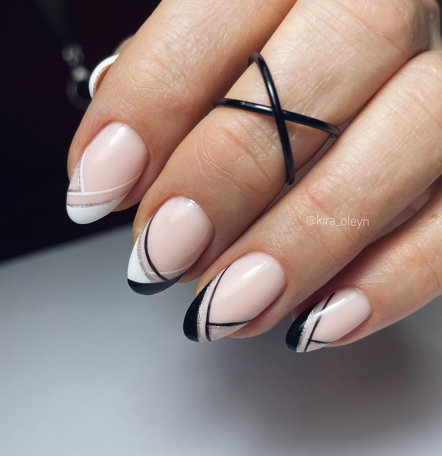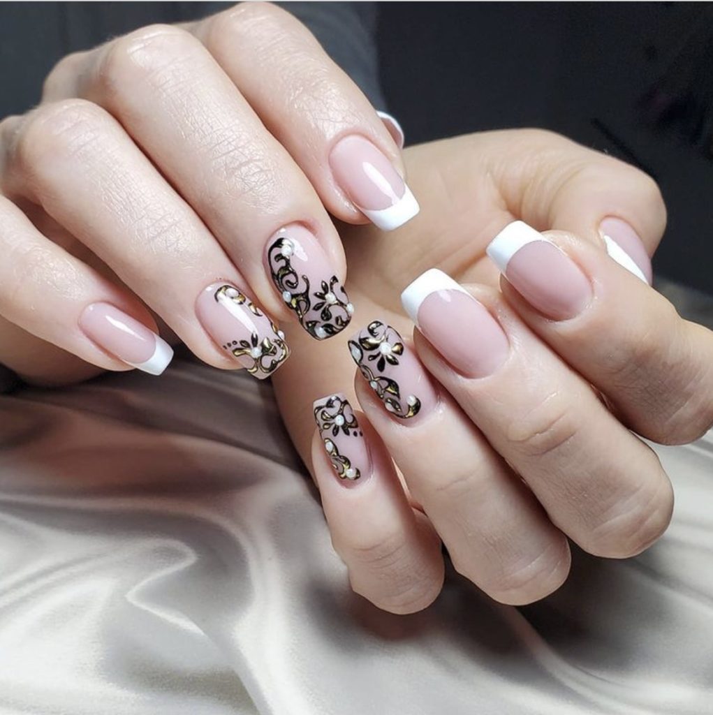 Френч маникюр с дизайном на разной форме ногтей в 2022 году