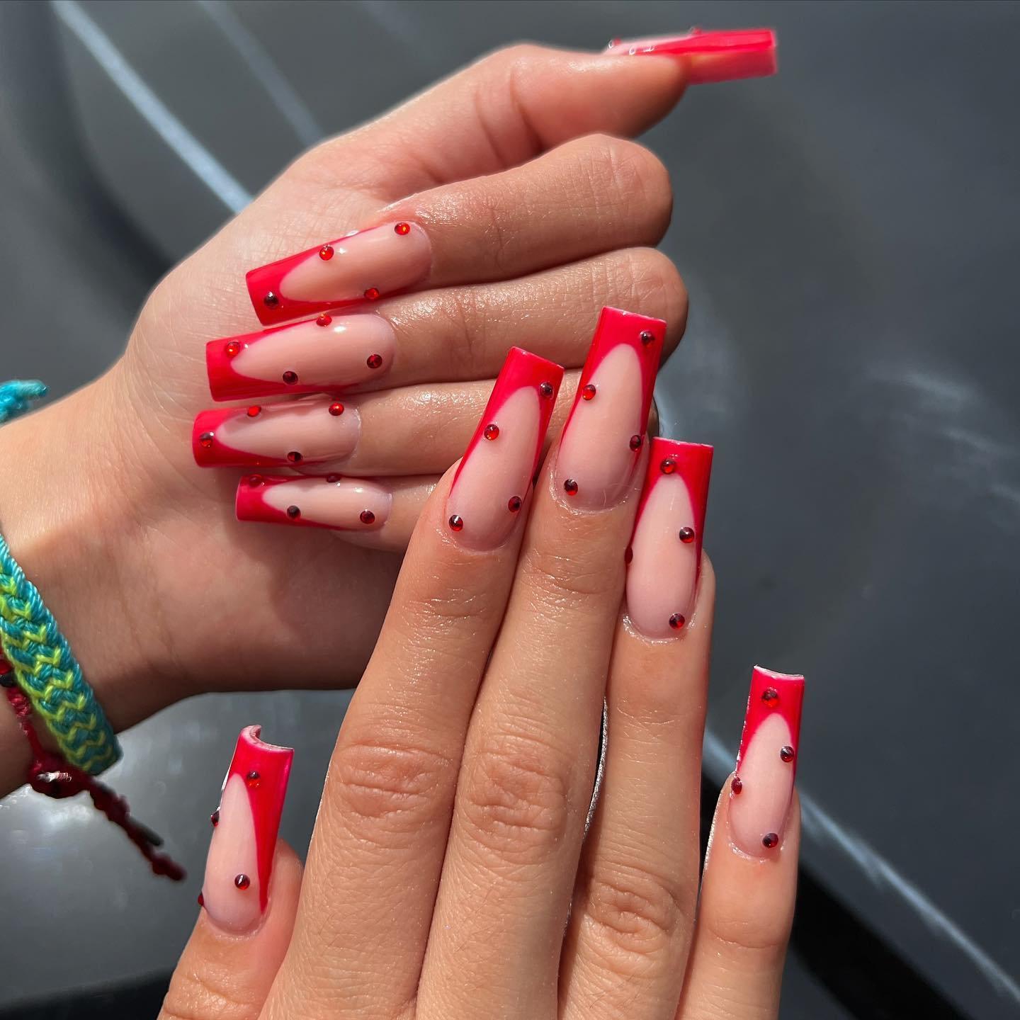 Она выглядит очень стильно и придает любой фотографии неповторимую элегантность. Такой яркий французский маникюр можно дополнить дизайном в виде абстракции, кружева, геометрии или цветочного узора. Каждый из них по-своему украшает красный французский. Дополнительные украшения в этом случае также уместны, но даже без них красный французский выглядит потрясающе.