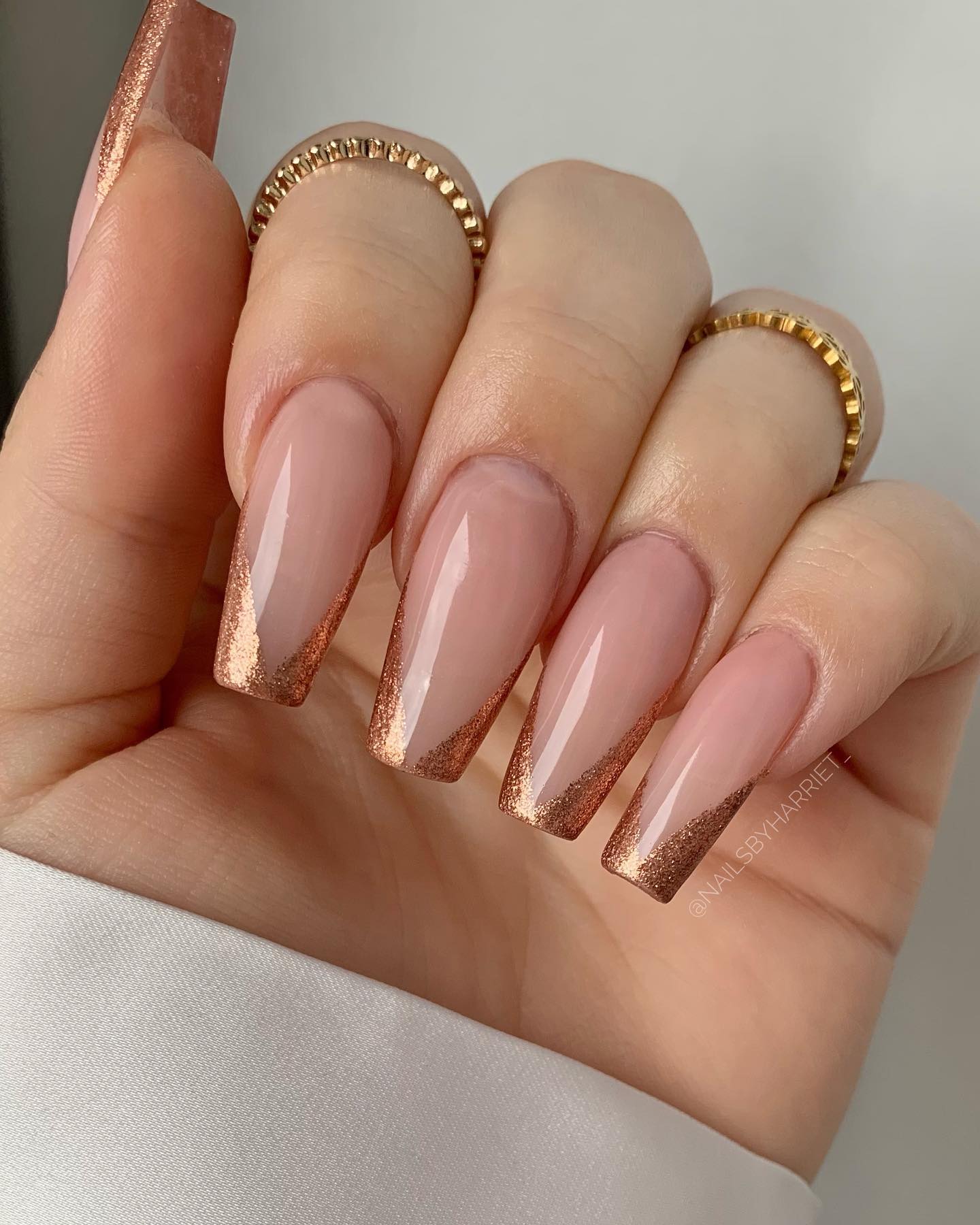 Лучшая новинка сезона, популярная у it-girls. Дизайн представляет собой нюдовый маникюр с невероятным глянцевым блеском. Это самый настоящий голливудский дизайн, который выглядит очень дорого. Его успех напрямую зависит от ухода за ногтями. Добиться здорового блеска помогут специальные масла для ногтей. Самые шикарные и красивые варианты глянцевого френч маникюра смотрите на фото.