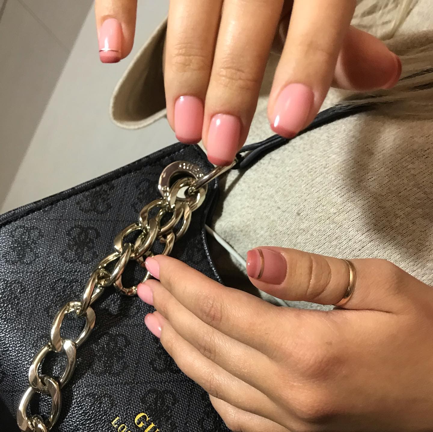 - Наносится первый грунтовочный слой розового самовыравнивающегося гель-лака.