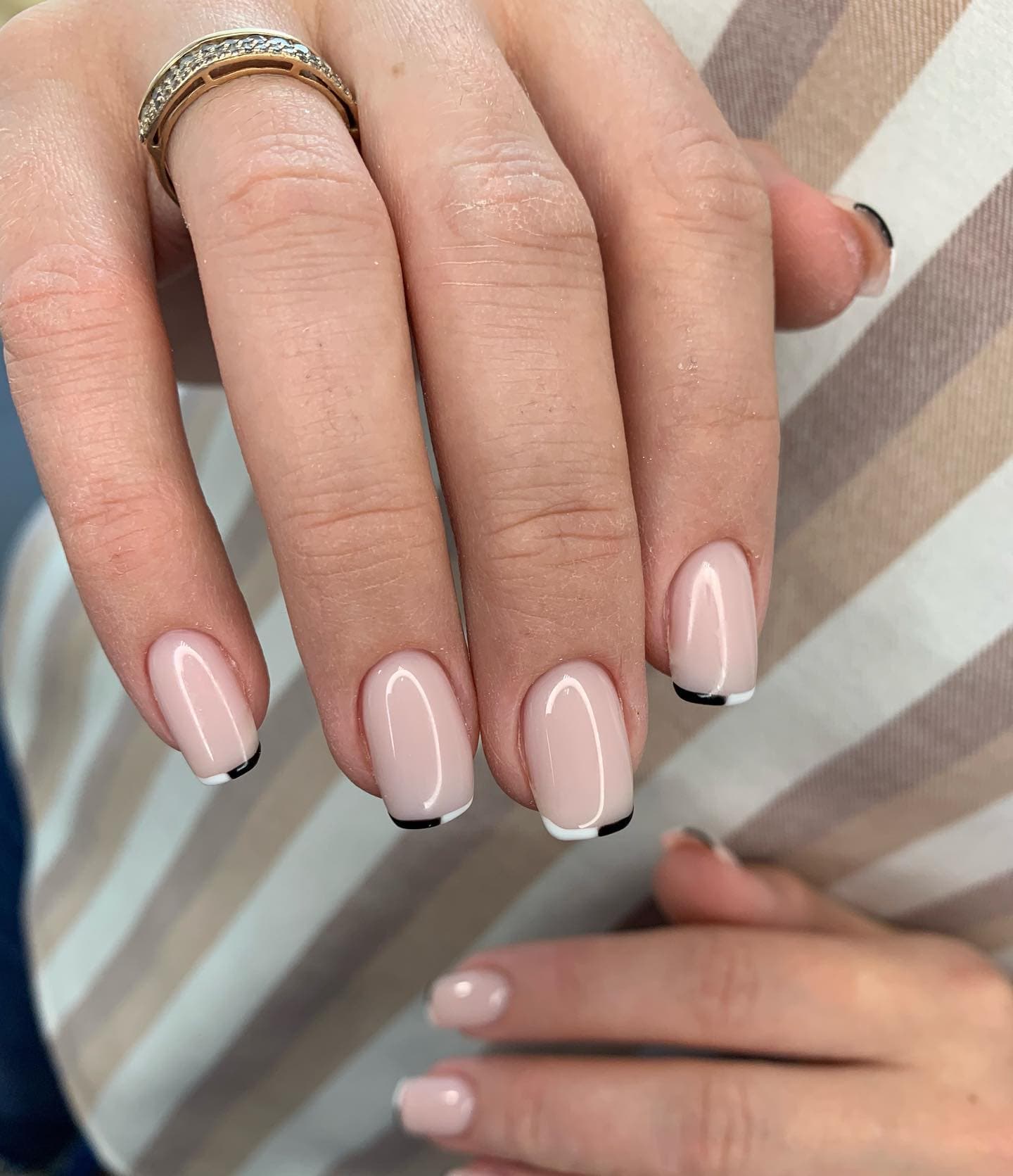 Девушкам, которые ищут стильный маникюр с элементами френча, рекомендуем обратить внимание на вариант с двойной каймой. Здесь белый край ногтя подчеркивается дважды, что создает стильный рисунок, который выглядит изящно и необычно