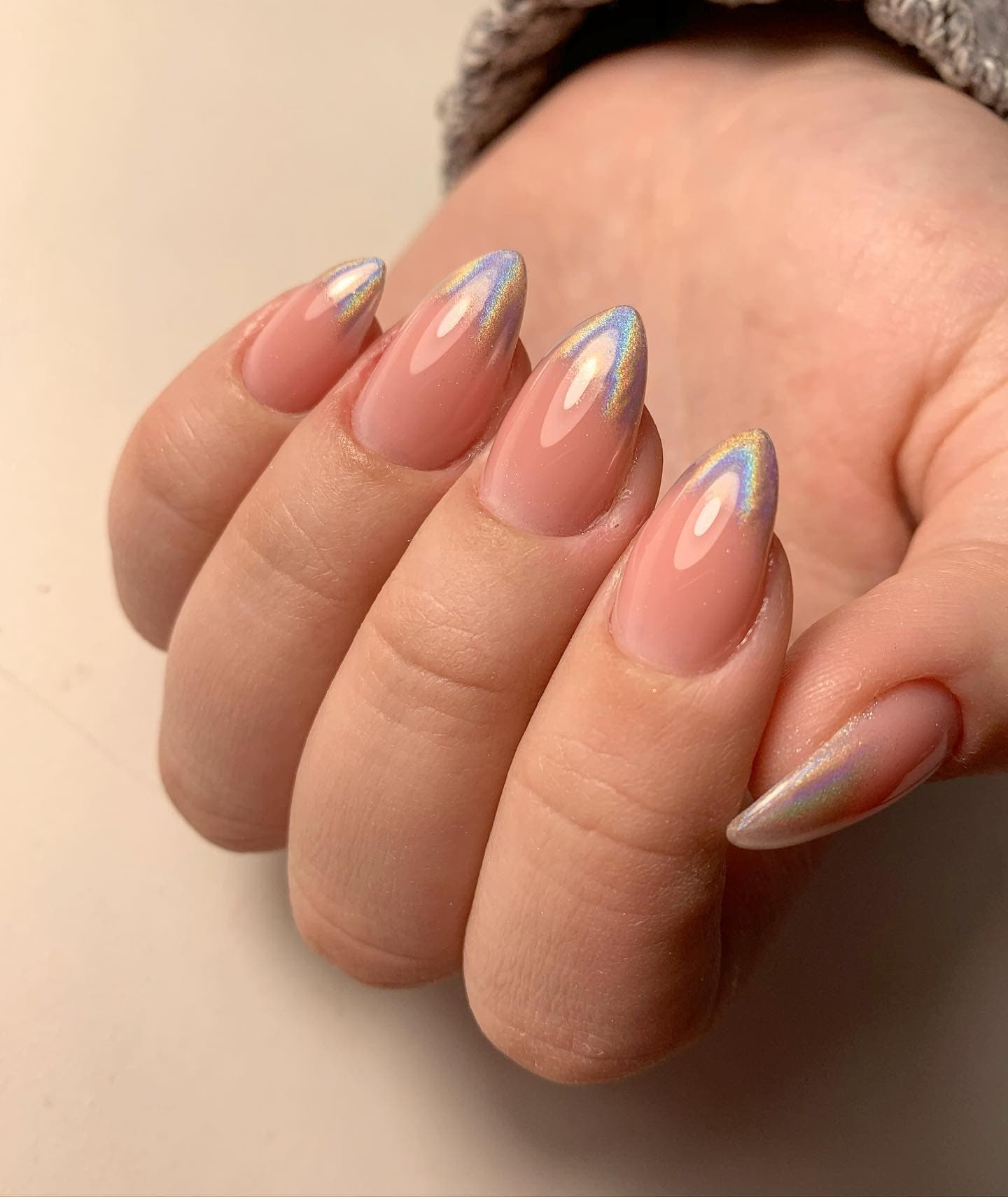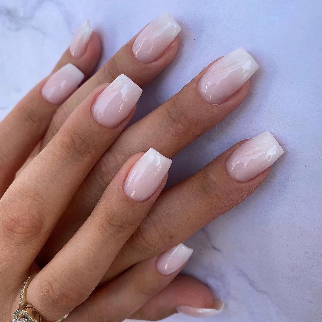 Французский маникюр омбре предполагает градиентное окрашивание одним или несколькими оттенками лака. Такой принт выглядит слегка размытым, его лучше всего сочетать с наращиванием ногтей. Если интересует стильный френч на острые ногти 2022, то омбре в модном оттенке точно подойдет.
