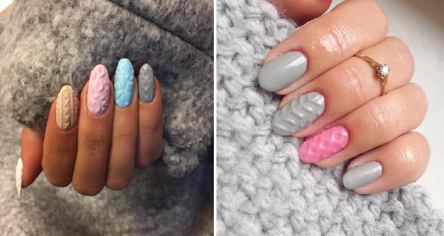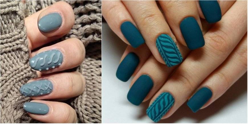 Кроме акриловой пудры, вязаный маникюр можно сделать и в других техниках: