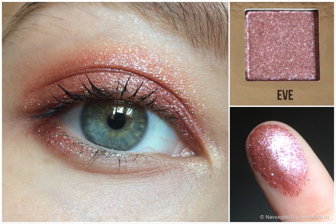 9. Красавец Eve. Яркий, розово-бордовый оттенок. На свотче показан один слой теней, но в отличии от остальных, данный цвет неплохо наслаивается и с ним можно даже добиться яркости.