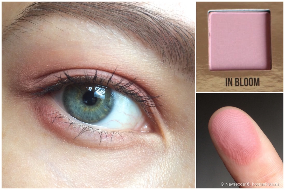 IN BLOOM матовый припыленно-розовый, хорошо пигментированный оттенок, при этом с ним невозможно переборщить, иногда использую его в качестве румян