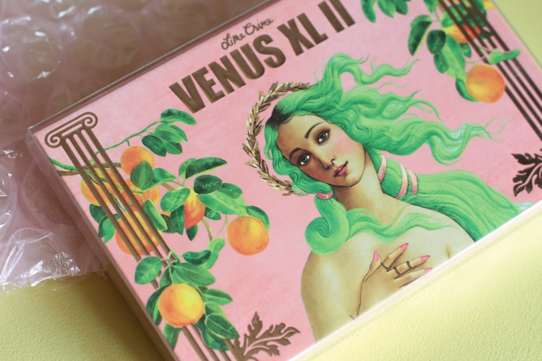 Упаковка теней Lime Crime выполнена из картона, все сделано очень качественно, не придраться. Как и вторая палетка Lime Crime Venus II, эта палитра также украшена узнаваемой Венерой, сотворенной Боттичелли, но в осовремененном варианте – макияж, цветные волосы и маникюр. Смело, модно и дерзко.