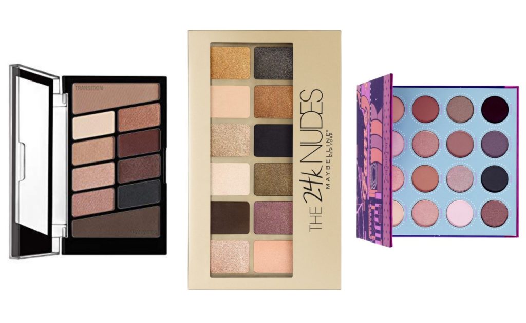 Палитра 24K Nudes от Maybelline — это недорогой набор из 12 изысканных мерцающих теней, от светло-бежевых оттенков до оливковых и черных.