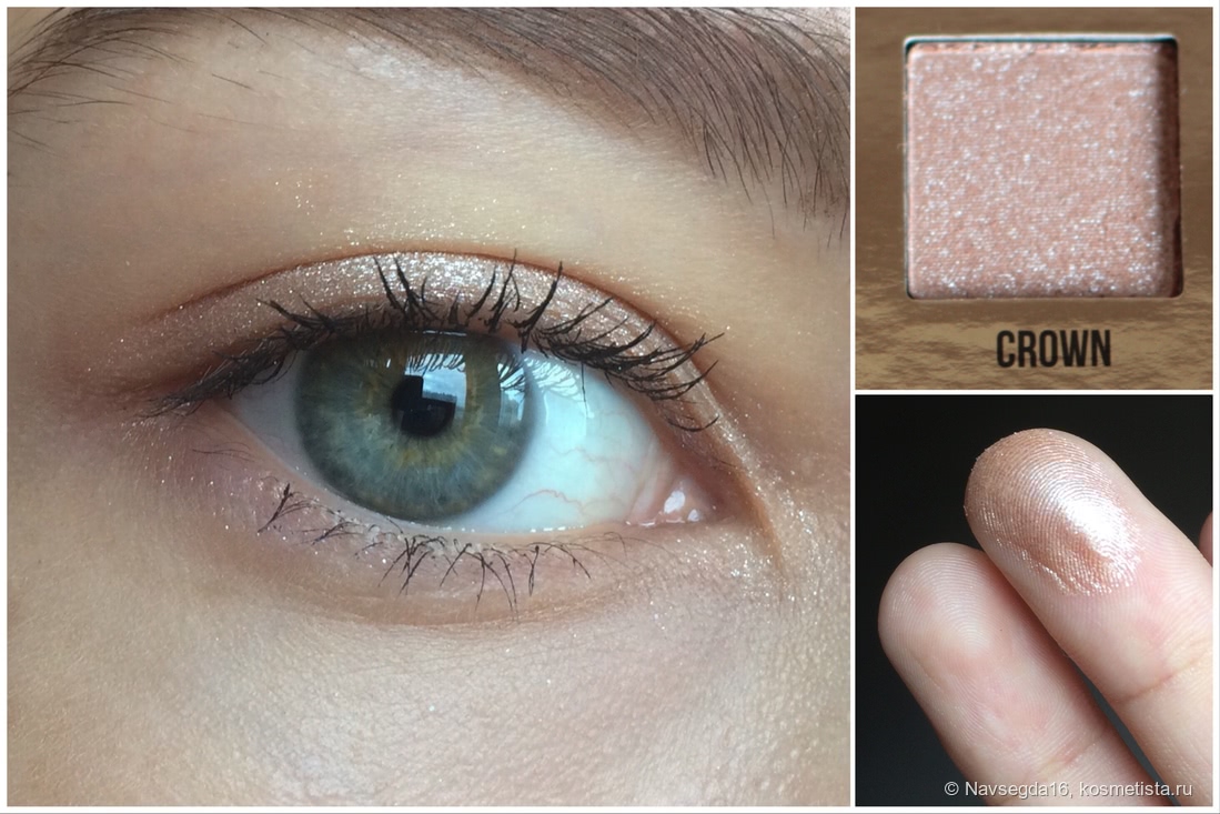 2. Далее Crown — сатиновый, даже блестящий. Текстура у теней в таким эффектов (у Lime Crime) похожа на так называемое «запеченное желе», поэтому к ним надо немного привыкнуть. Конкретно этот цвет ложится на кожу далеко не так плотно и ярко как хотелось бы, спасает «влажное» нанесение. На фото свотч по сухой коже.
