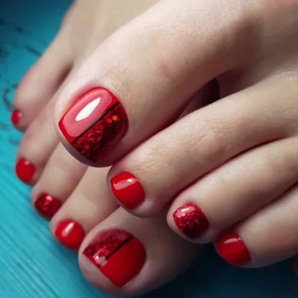 После проведения процедуры ногти полностью готовы к созданию дизайна и декорированию. Для ухоженных стоп подойдет любой, даже самый смелый и броский педикюр. Среди ярких и насыщенных вариантов всегда отлично смотрятся оттенки красного. Такие лаки можно использовать как самостоятельное покрытие, а также комбинировать его с блестками, камифубиками или легкими узором.