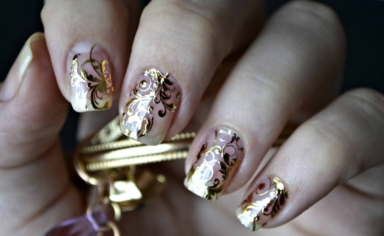 Такие варианты изготавливают на клеевой и водной основе. Имеют выпуклые детали, которые создают объемность изображения и никак не помешают в быту, когда будут нанесены на ваши ногти. Красивый рельеф смотрится оригинально и необычно, только в процессе прикрепления нужно быть осторожным, чтобы не создать ненужных складок по бокам.