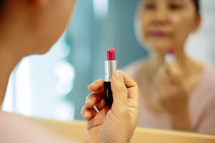 До нанесения губной помады лучше проскрабировать губы, чтобы косметическое средство не скатывалось во время праздника.