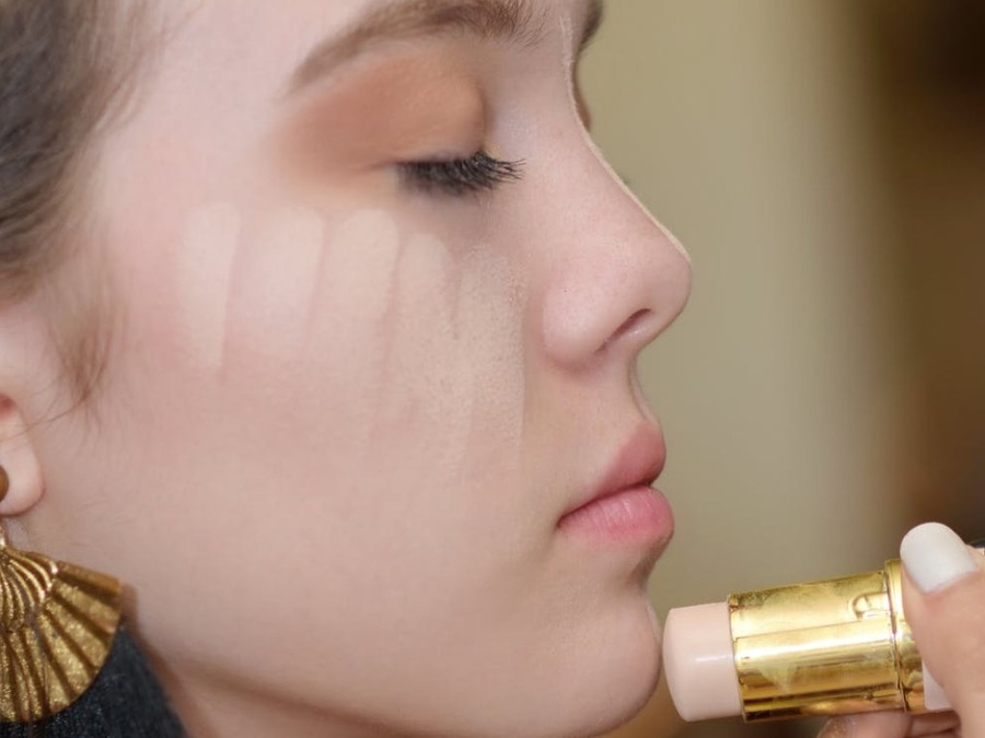 Наложение восточного макияжа начинается с подготовки кожи. Если вы уже затемнили ее с помощью автозагара, нанесите тонкий слой тонального крема и равномерно распределите его.