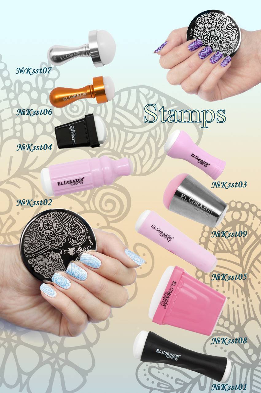 Также El Corazon предлагает двусторонние штампы с подушечками разного диаметра из резины. В комплекте с таким инструментом также идет скребок из пластика средней жесткости. Цена на набор – около 350 р.