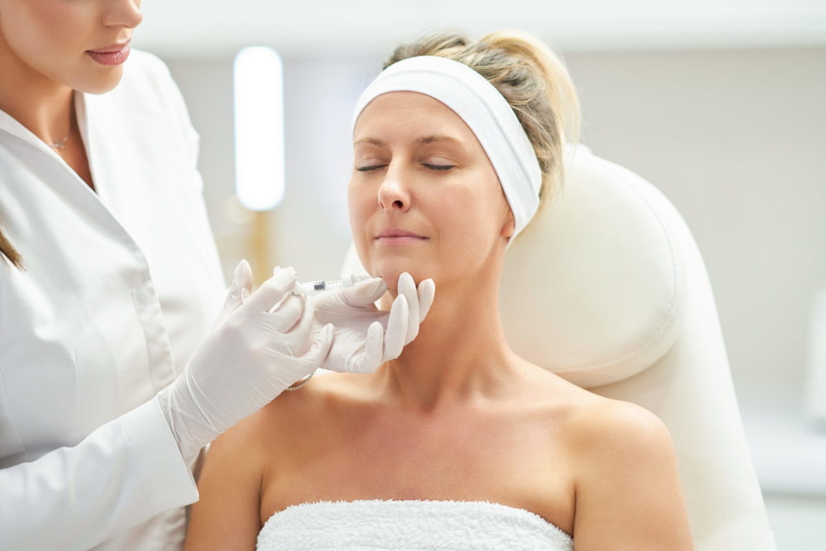 - по линии подбородка в кожу вводят препараты, расщепляющие жир и ускоряющие процессы обмена;