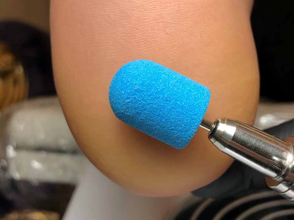Раз уж мы упомянули грибковые заболевания кожи и ногтей, стоит сказать, что сухой педикюр необходимо выполнять одноразовой теркой или теркой с одноразовым абразивом; при работе аппаратом нужно использовать одноразовый колпачок. Если грибок присутствует на части ногтей, то лучше не проводить процедуру мацерации, чтобы не инфицировать здоровые ногти и кожу.