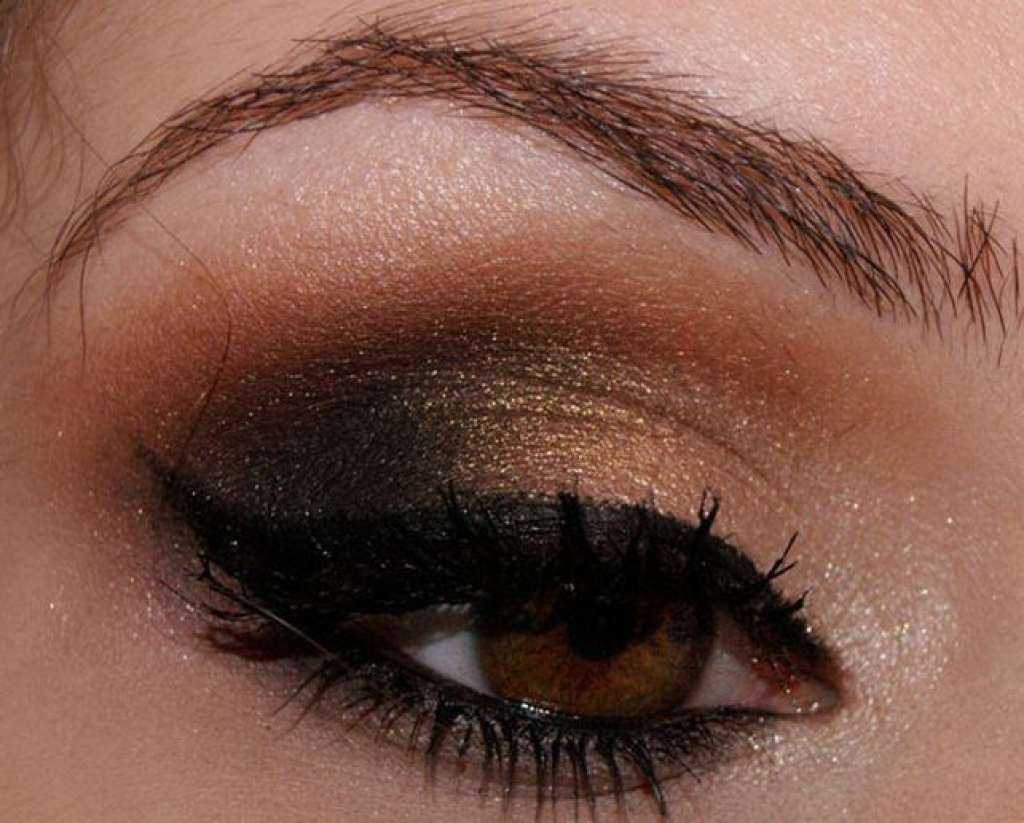 Кареглазые брюнетки свободны в выборе. Кроме черной и серой классики, им подходит вся радужная палитра, включая экстремальные, насыщенно-яркие оттенки с блеском. Для светло-коричневых глаз предпочтительны теплые карамельные и медовые тона, а темные, почти черные очи хорошо сочетаются с серебром, серым, синим и фиалковым.