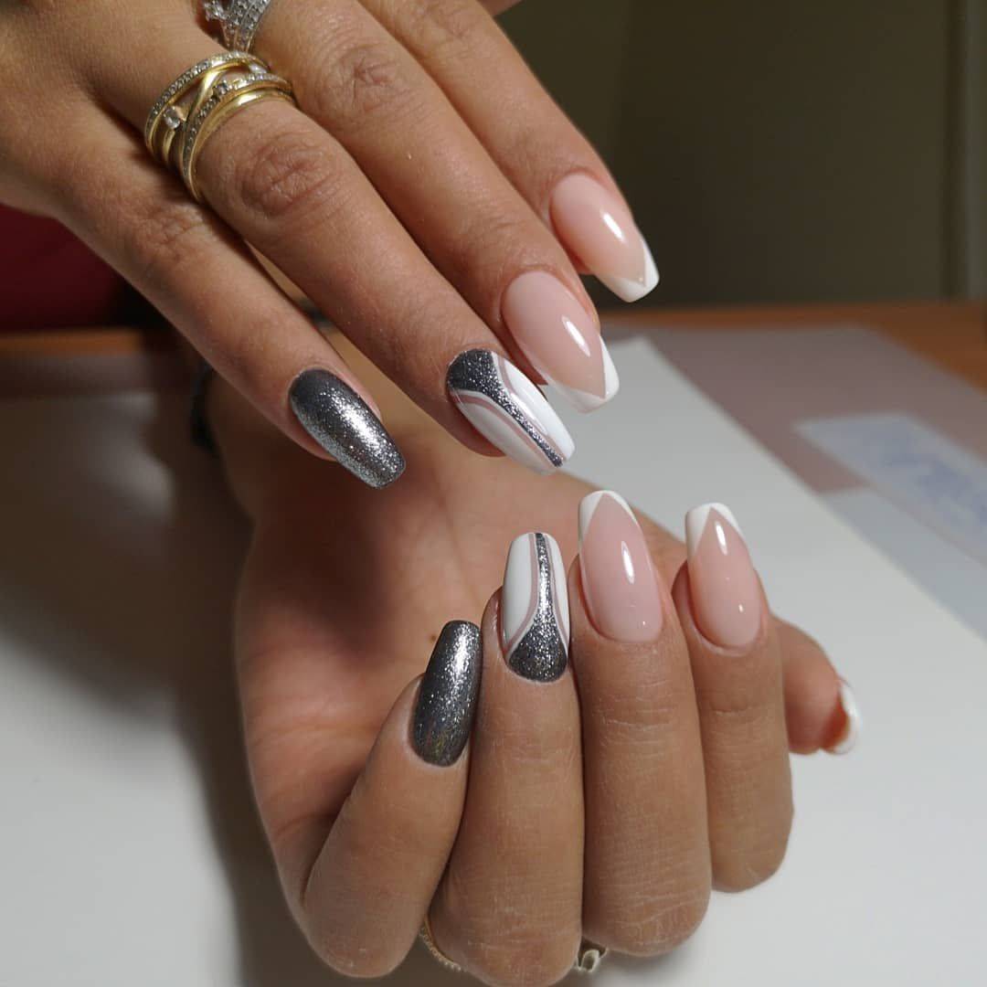 Ниже приведены примеры стильных дизайнов маникюра с использованием блестящей пудры.