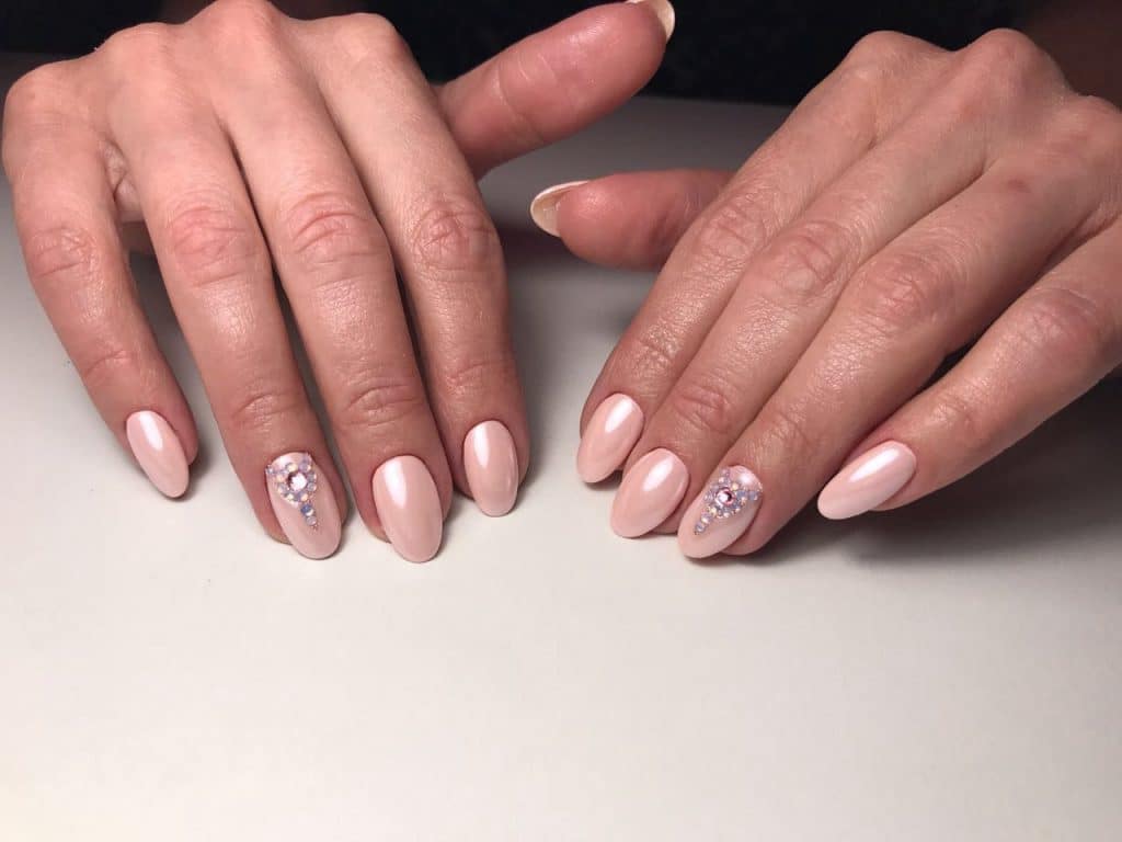 Выполняя маникюр со стразами на основе жемчужного лака, вы добьетесь формирования безупречного образа для любого мероприятия, начиная от званого вечера и заканчивая свадьбой.