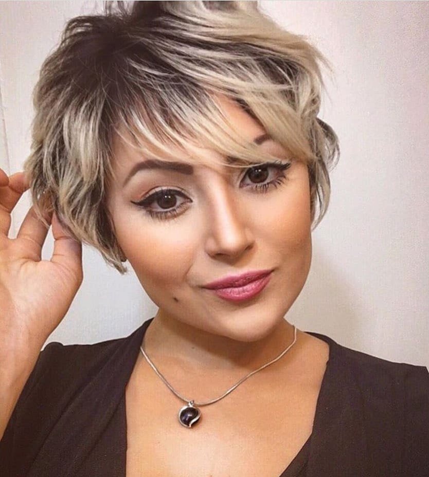Прическа для ромба должна сбалансировать выступающие скулы. Подойдут боб-каре, каскад, лесенка. На средние волосы можно выбрать асимметричную, редкую челку, прически с укладкой на бок. Выбирая короткие прически вроде пикси, объем стоит сосредоточить на подбородке и макушке. Это сгладит недостатки ромбовидной формы.