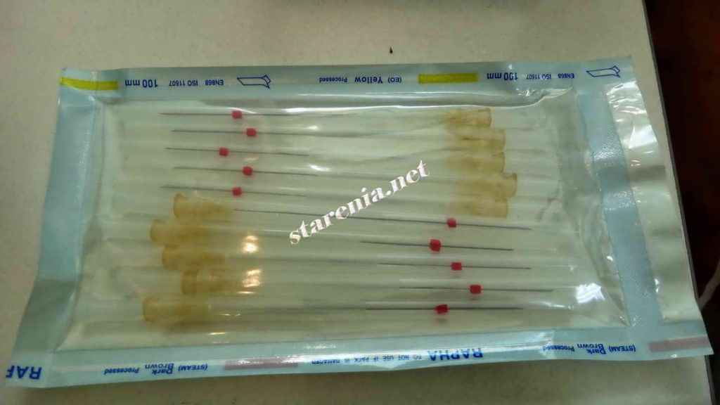 После того, как все нити введены, места проколов врач еще раз обрабатывает антисептиком и приложить холодный компресс, чтобы уменьшить отечность. Приблизительное время процедуры — 1 час.