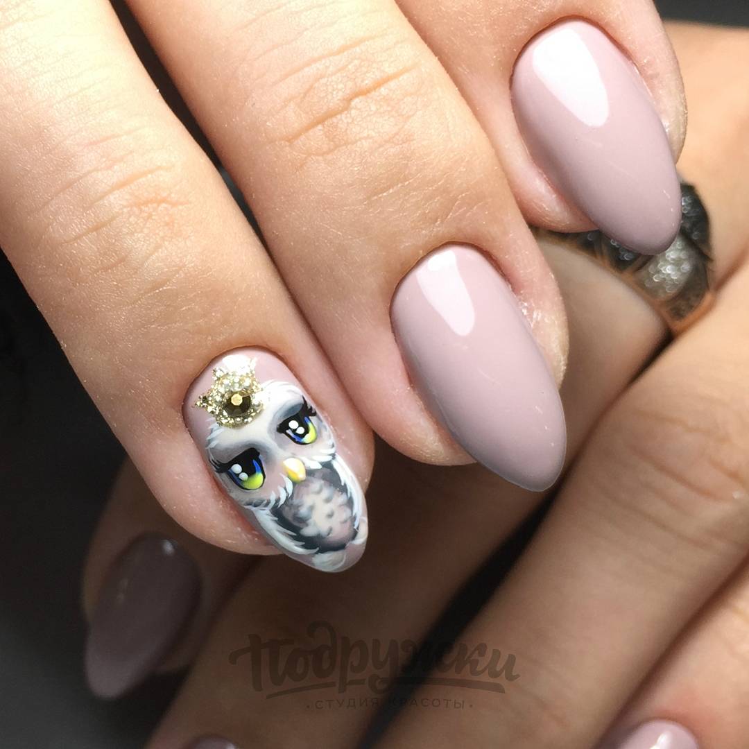 Больше всего маникюр с анималистическим дизайном ценится среди молодых девушек, хотя многие дамы в возрасте также не против изобразить, например, роскошных сов со стразами.